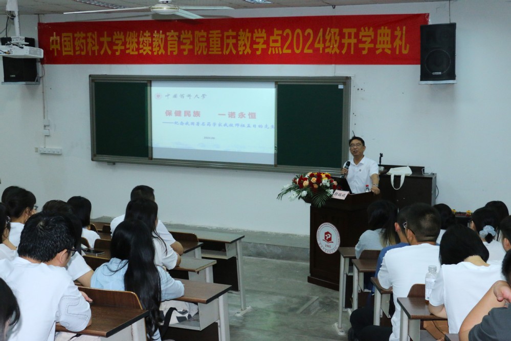 6月1日上午,中国药科大学高等学历继续教育重庆校外教学点举行2024级新生开学典礼。中国药科大学校长助理、玄武门校区党委书记、玄武门校区管委会主任邬瑞斌,继续教育学院副院长张志强,重庆校外教学点、重庆市医药经贸学校校长唐宗琼以及200多名学生参加典礼。典礼由重庆市医药经贸学校副校长黄广梅主持。
