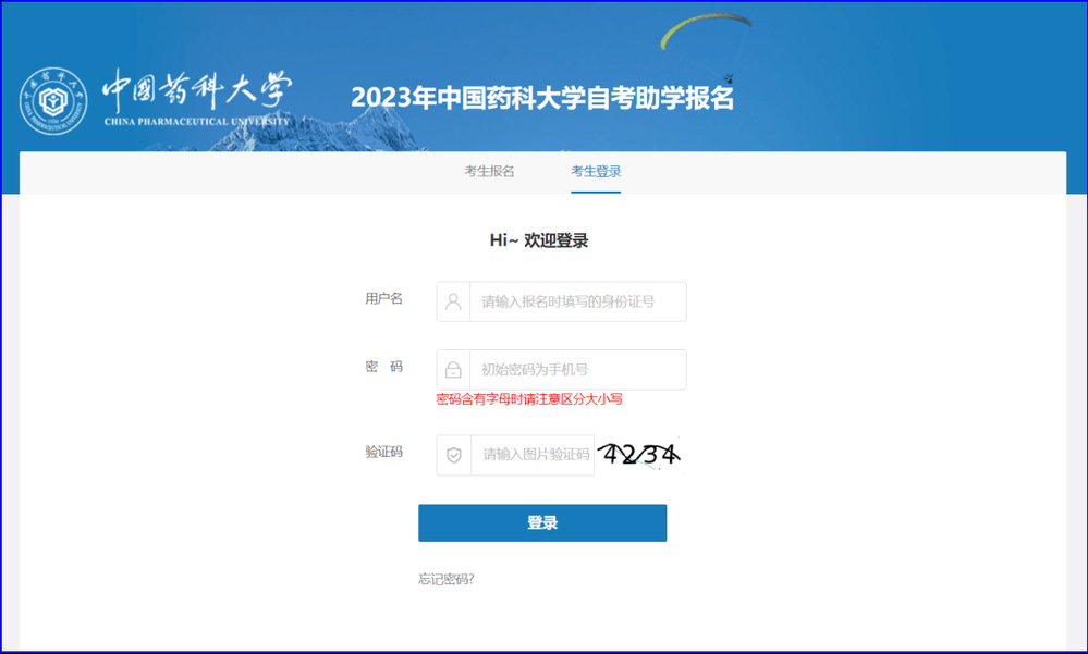 (一)请使用浏览器打开“2024年中国药科大学自考助学报名”网页:https://zgykzk-student.sccchina.net/enroll/toSignUpZZ.html
