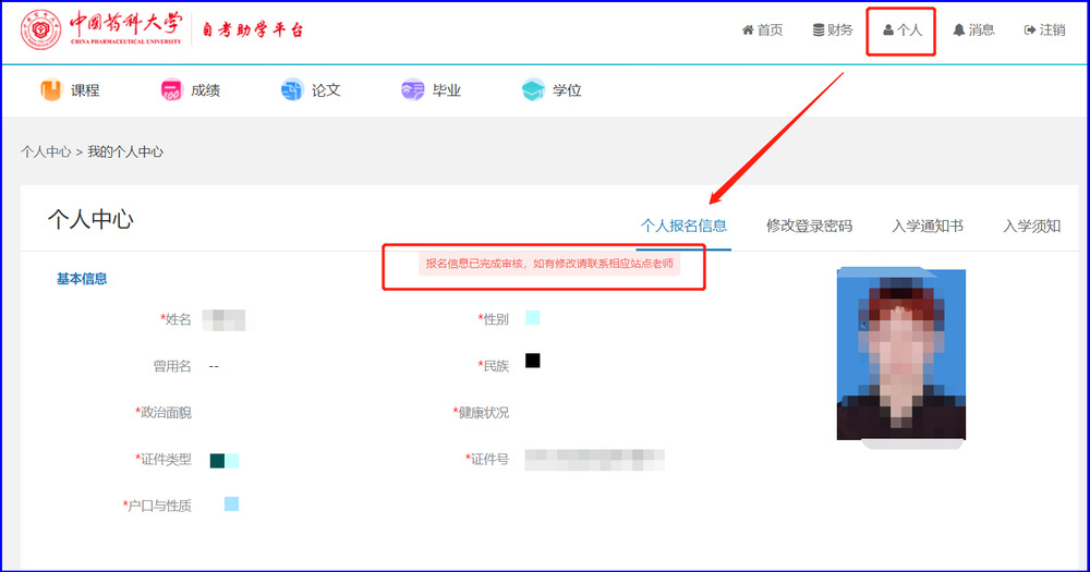 当报名已审核时,如有修改需联系负责老师。