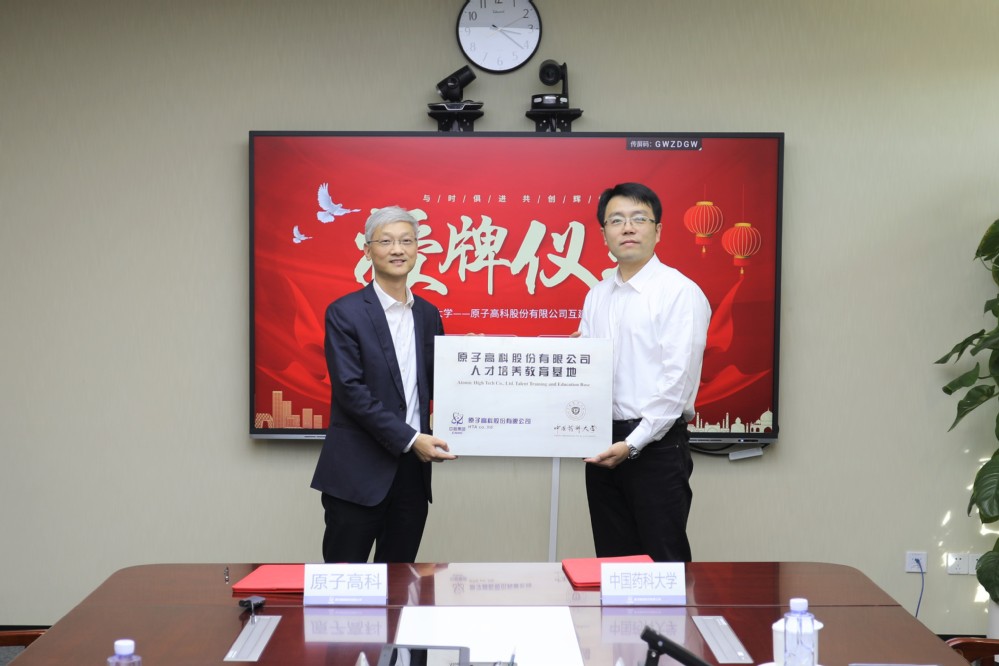 随后,双方代表签署合作协议,并为“原子高科人才培养基地”“中国药科大学放药生产质量管理培训实训基地”揭牌。