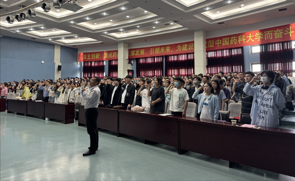 典礼还安排了集体佩戴校徽、《药学生誓词》宣誓、奏唱“中国药科大学校歌”等环节,营造了浓厚的仪式感,在场学生深受感动与鼓舞。
