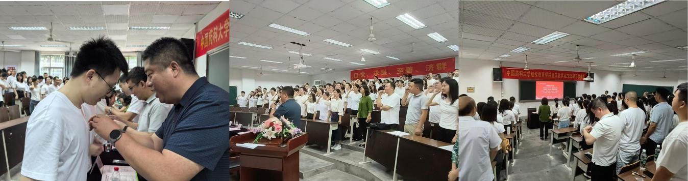 随后,新生代表与教师代表相继发言,从不同角度展现了师生携手奋进的决心。与会领导庄重地为新生代表佩戴校徽全体新生宣誓药学生誓词”,奏唱中国药科大学校歌