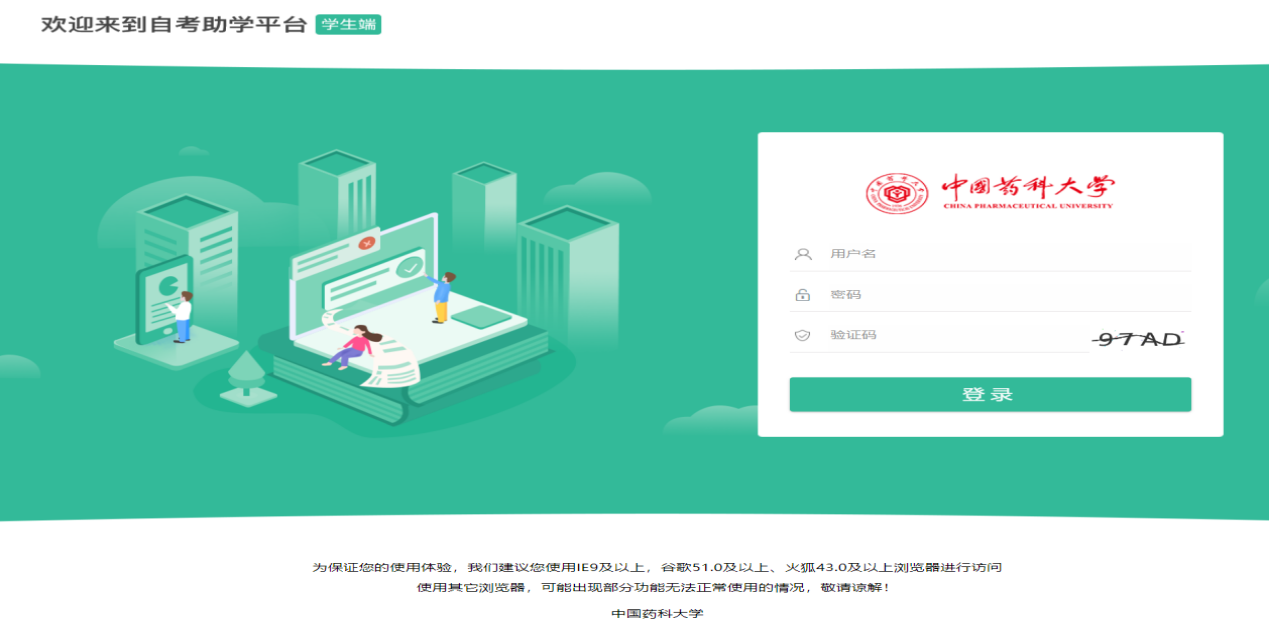 一、登录自考助学系统入口:https://zgykzk-student.sccchina.net/