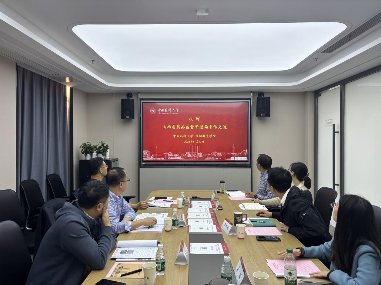 11月13日,山西省药品监督管理局人事处处长杜江一行来我校继续教育学院调研交流。山西省药品监督管理局人事处副处长贺鸿宙、财务处副处长董鼠应,我校继续教育学院院长张杨彬及培训部相关人员参加座谈。