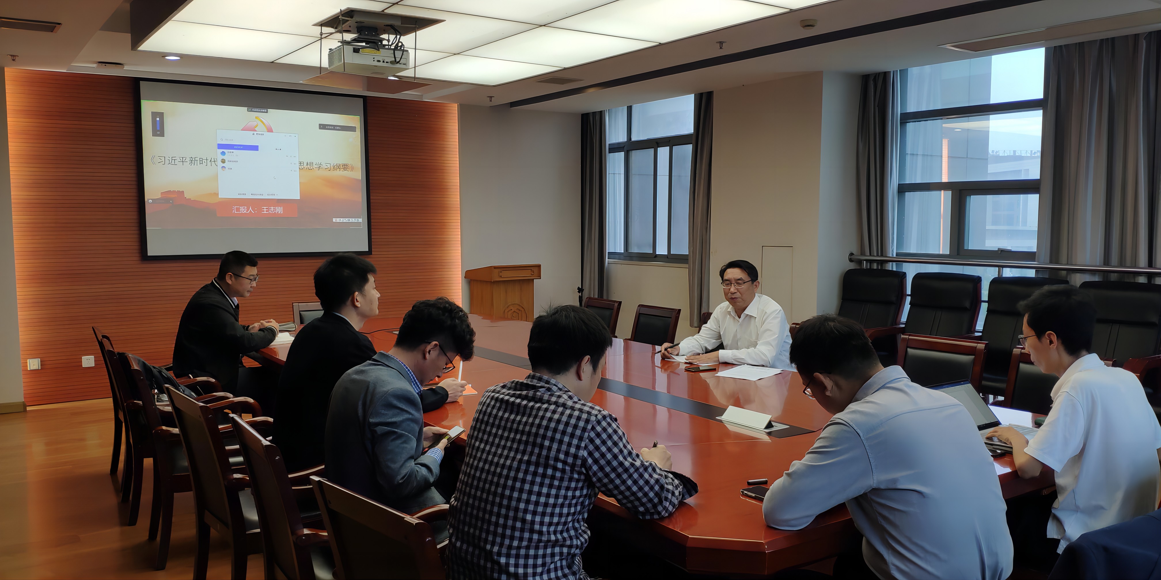王志刚副书记领读领学了习近平新时代中国特色社会主义思想“十个明确”、“十四个坚持”、“十三个方面成就”、“六个必须坚持”等核心内容,并结合自身所见所闻,汇报了个人的学习体会。在深入学习《习近平新时代中国特色社会主义思想学习纲要》基础上,他通过幻灯片、图片和视频等多种形式,提纲挈领地阐述了《习近平新时代中国特色社会主义思想学习纲要》中体现的“以人民为中心”的理念。他表示,新时代我国社会的主要矛盾是人民日益增长的美好生活需要和不平衡不充分的发展之间的矛盾。人民群众对美好生活的向往更加强烈,我们要始终把满足人民对美好生活的新期待作为发展的出发点和落脚点,永远保持共产党人的奋斗精神,永远保持对人民的赤子之心,努力为人民创造更美好、更幸福的生活,推动全体人民共同富裕取得更为明显的实质性进展。
