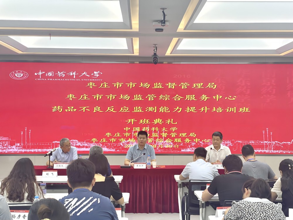 830日,由继续教育学院主办的枣庄市市场监管综合服务中心药品不良反应监测能力提升培训班”开班仪式中国药科大学玄武门校区举行。枣庄市市场监督管理局党组成员郝勇、监管综合服务中心副主任韩鹏,继续教育学院院长张永泽等出席仪式仪式由韩鹏副主任主持。