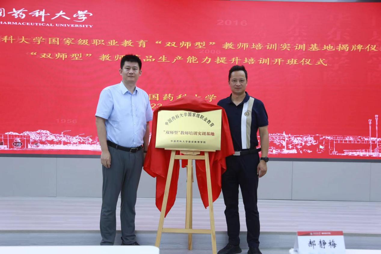 随后,张永泽院长和倪滨斌副总经理共同为中国药科大学国家级职业教育“双师型”教师培训实训基地揭牌。