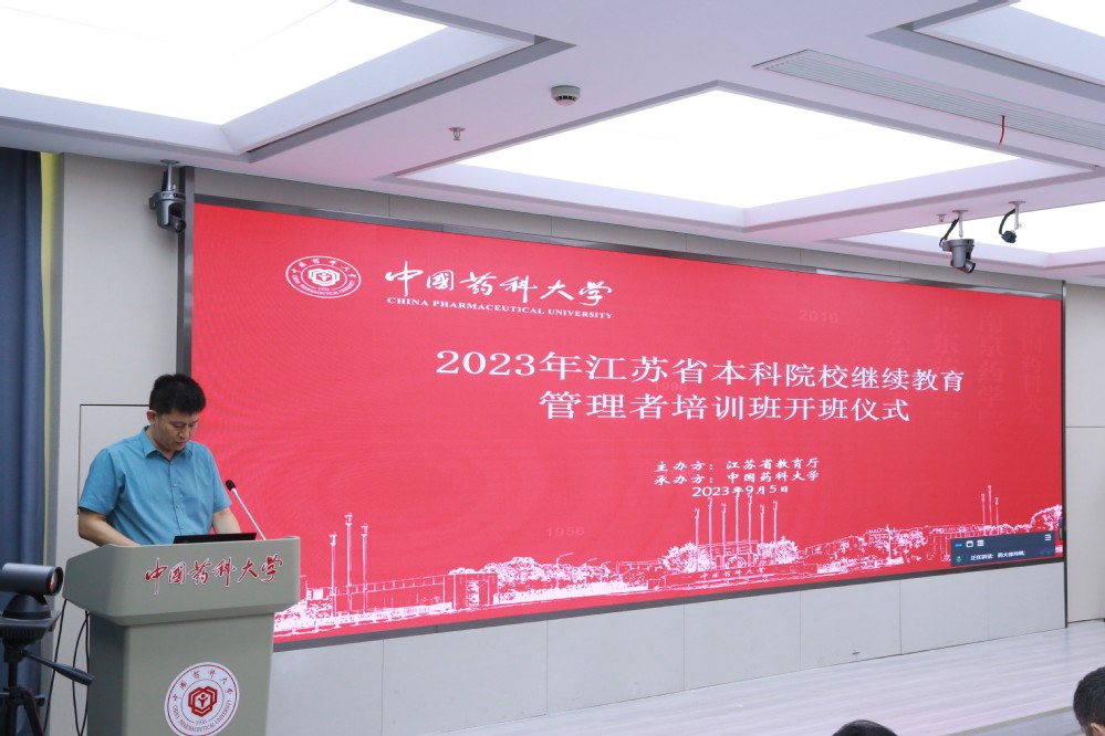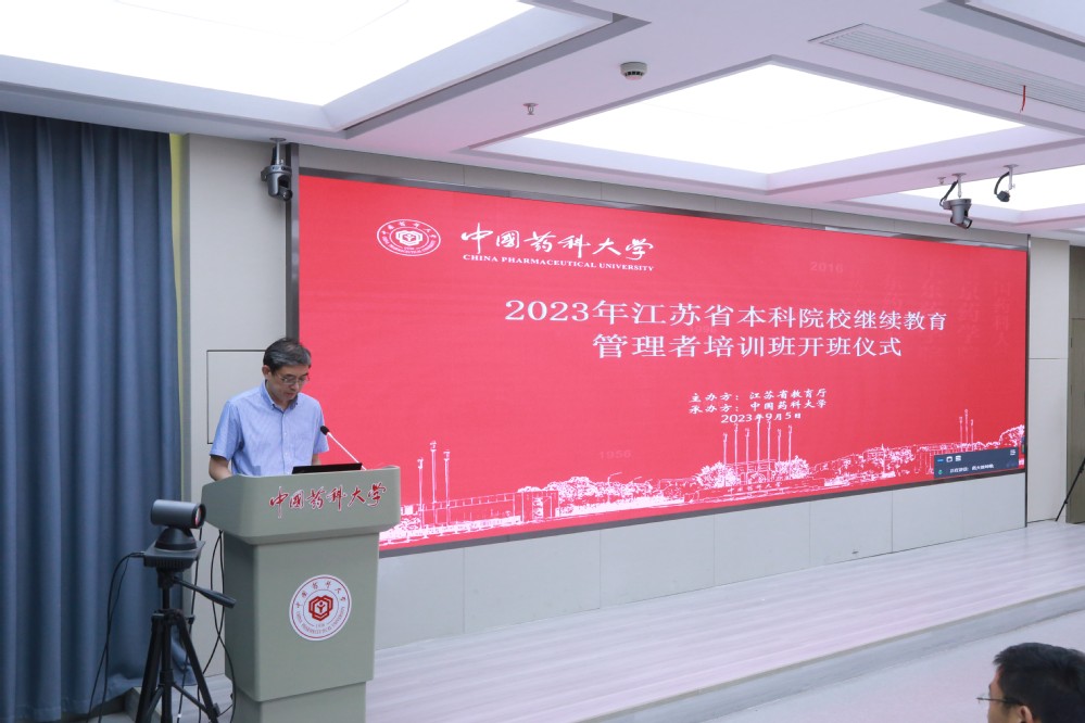 9月5-7日,由江苏省教育厅主办、中国药科大学承办的“2023年江苏省本科院校继续教育管理者培训班”在我校玄武门校区6号楼三楼报告厅顺利举行。江苏省教育厅高等教育处处长徐庆、二级调研员郭新宇,全省部分高校继续教育学院院长及管理人员,部分设区市教育局继续教育负责同志等50余人线下参加了开班仪式。仪式由南京审计大学继续教育学院院长李昆主持。